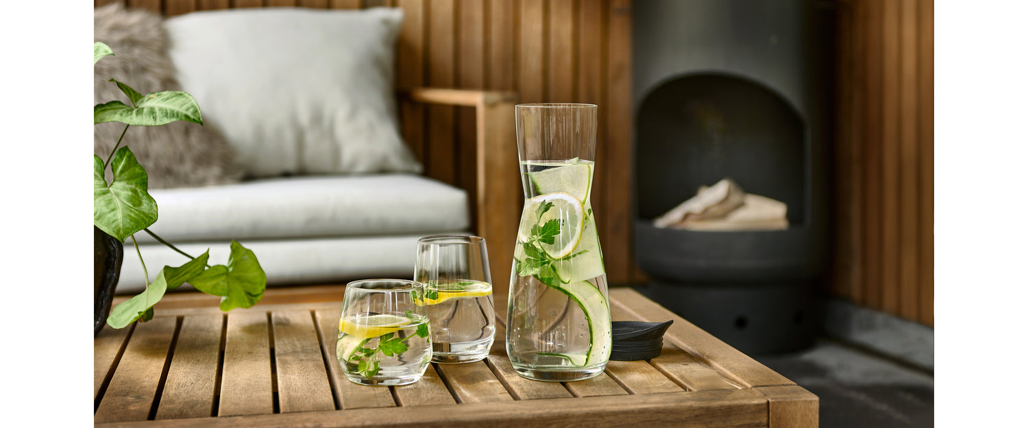 We offer also solutions for tabletop wine service and presenting fruit-infused drinks in your establishment. The Ensemble range consists of decanters and matching water glasses, especially designed to create a freshly looking water presentation. Trendy yet practical, with its long silhouette, these large capacity pieces can turn any table setting from casual to elegant and stylish. It is suitable for water, juice and fruit-herb-infused-water and even sangria and white and rosé wines. Because of the wide mouth it makes cleaning easier. It will be an excellent addition to any dining area.
